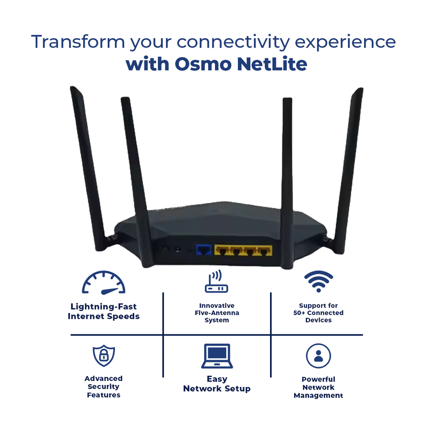 Experience next-generation internet connectivity with the Osmo NetLite VRX, the wireless router that combines speed, stability, and security to meet all your connectivity needs.